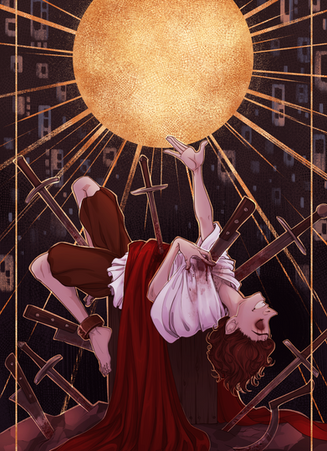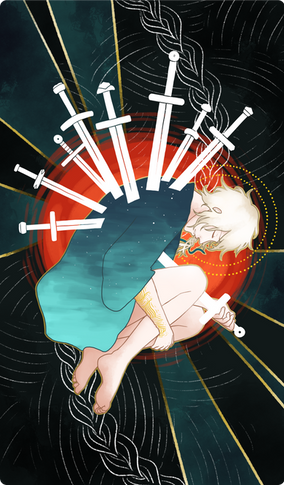 Ten of Swords card for kyluxtarot.tumblr.com's collaborative tarot project. I picked this card because well, I rly like 10 of swords' meaning.Help donate to my fund to buy a new tablet so I can continue making arts. goo.gl/mlD1t4