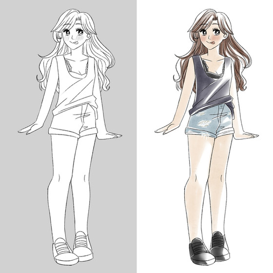 I will be drawing my own stuff for the time being. Mostly OCs and of course - cute girls in cute outfits!