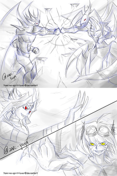 Wow. I love this drawing. Why these two are fighting?. Demon Atemu aka Yami is powerful enough to beat him?