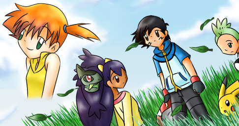 ash, misty, brock, pikachu,togetic (c) pokemon