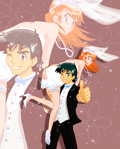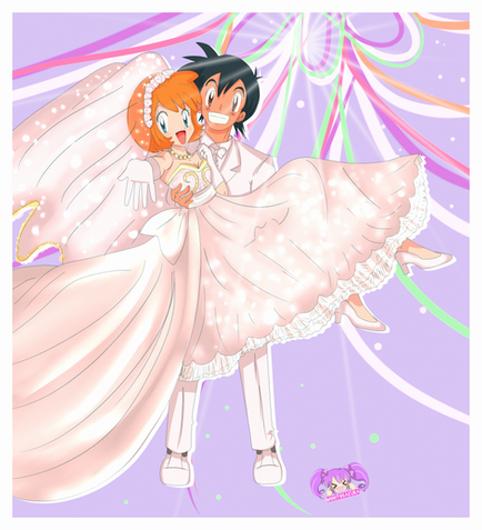 1: when Aillene was telling Ash that she liked him, he kindly rejects by saying "sorry, there's already a girl i like..-blushing-" she smirked and guessed it was misty, he blushed harder