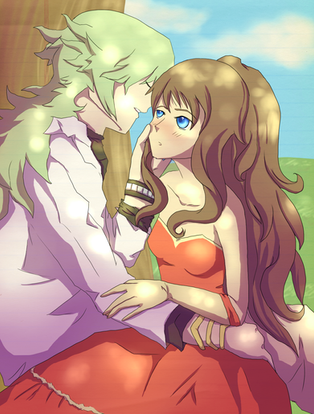 a soft smile was painted across the red head's face, a real one. then, out of no where, he yanked his lovely wife's hands, gaining a yelp from her. her head now rest on his lap, his face over hers. kotone flashed a happy grin and lift her upper body up and place a gentle kiss on the man, brushing away all uncertainties and worry from him. with just that one soft kiss...