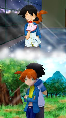 it got silent again for a few seconds. silver stared at his shoes, not able to look at her, uncertain of her reaction. then, he heard her giggle. he looked up at her, seeing her happy face. "oh silv, arceus, you're worried about that? you don't have to be you know~ everything will be fine~ i know it will~"