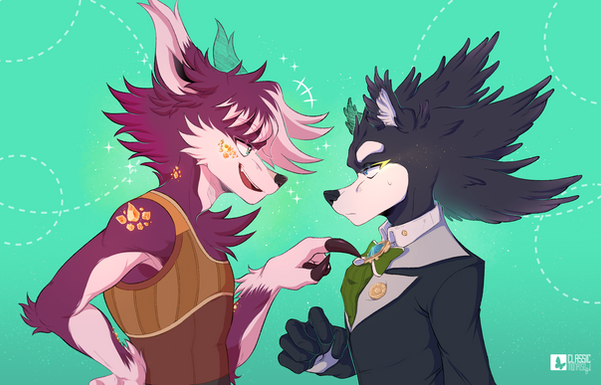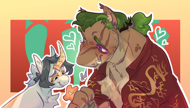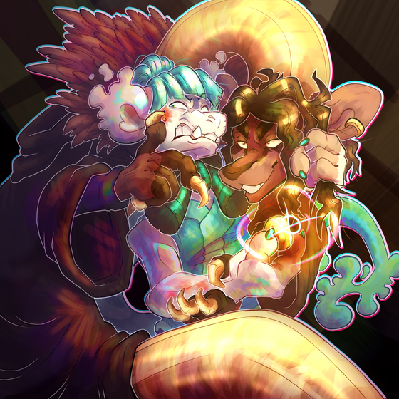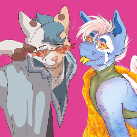Inspired by unicorn-shaped "BEST FRIENDS" necklaces at a gift shop. Hyden is like a Homestuck troll, his brain is broken in a way that makes having an enemy or rival very fun and fulfilling for him (as long as he has the upper hand, of course). Ambroys... not so much.(Turns out drawing and responding to comments is also hard on vacation when everyone you're there with is a turbo normie who would find furry stuff upsetting. I do not want any of them to know about my social media, and also I am busy doing vacation things, so I have not been online much and won't be till I get back home... alas!)