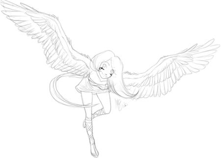 I don't know who the character is, but you've intrigued me to look it up! Wings are hard to draw, I've been looking for a great reference. Well done! This is awesome!