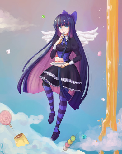 Gaah, such wonderful coloring! Her hair came out amazing, and I love Stocking's expression. All the details here are just plain love, man.