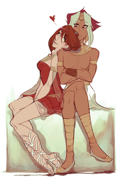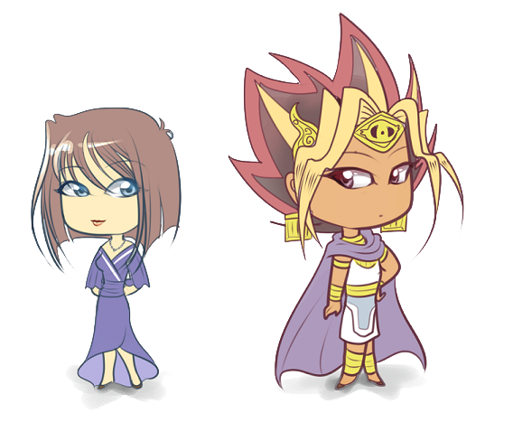 Heh, this one I think if my favorite of the ones that you've done! ^_^ I've been wanting to comment on it for a little while now! I love seeing your version of these two in your lovely and unique chibi style and I really like the coloring of this! It seems to get better and better with each of your works! This one definitely has a glow to it that I find appealing and there's some nice detail too! Both characters eyes are lovely; especially Anzu's bright blues! I also like her dress and accessories!
