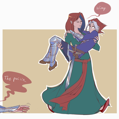 Heh, I don't think she'll be leaving him alone anytime soon and despite what he says, he doesn't seem to eager to get away!