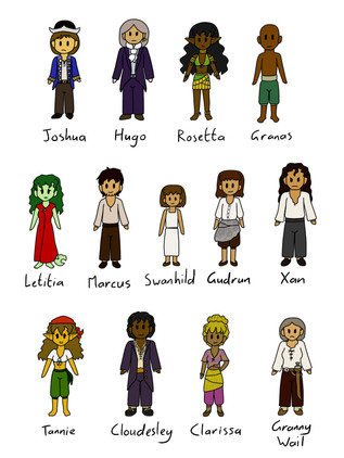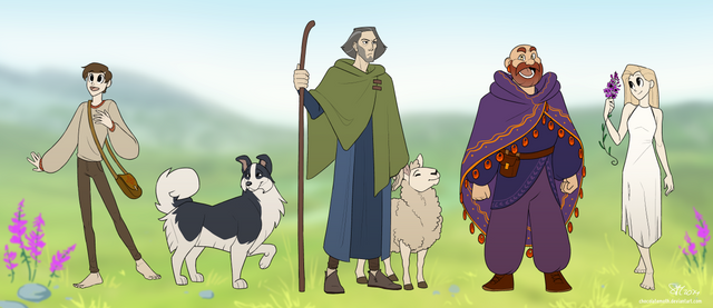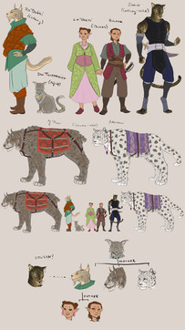 Finally finished this one! For some reason I didn't realize making 3 characters would take 3 times as long.These guys show up in the White Deer chapter c: Raya is the most important one of them, but I need to design them all anyway. I think all together there should be about 5 or 6 of them, so I'll need to design some more for the comic.