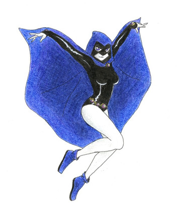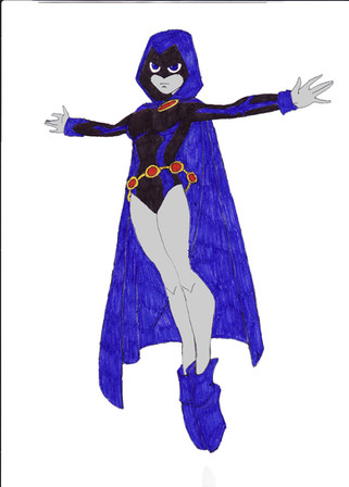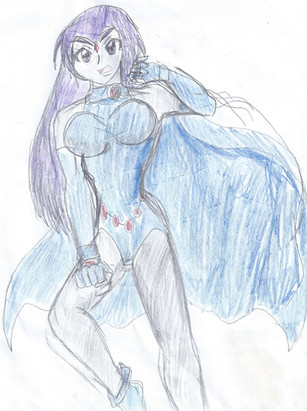 Once again, another fanart for Rurouni Tyriel's story "Clash of the Titans" posted on fanfiction.net. I encourage you to check it out. He writes the Teen Titans very well, and even includes some comic references, which is pretty neat.This is the new and improved Raven, who has basically shed her old leotard for a more... revealing one. Oh come on, Raven can be sexy. So anyway, this is the way I visualized her new outfit, and though my colored pencils didn't want to work for me, especially on her cape, I still like the drawing, and possibly I'll just post the line art and then you can see what she looks like without the crappy colored pencil work. I can do so much better, honestly. Check out my other piece here entitled Cemetery Angel and you'll see what I mean (shameless plug for myself).