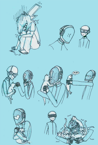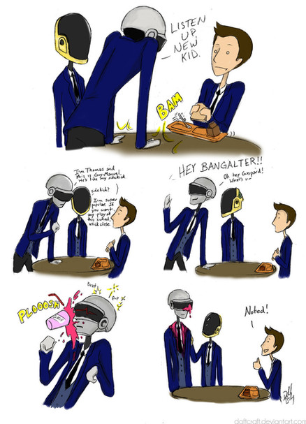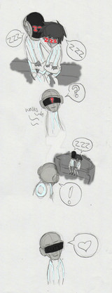 Truth is I know just about nothing when it comes to the guys that make Daft Punk. I have just listened to their music for years. I love these pictures that you make of them. It is like I am reading a comic of it's own origin. You know what I mean?