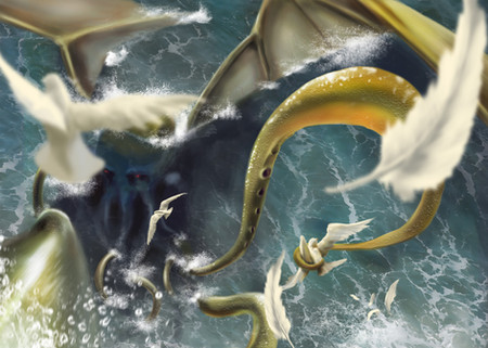 Even if I ain't selected for the contest, at least I've learn about Lovecraft, which I haven't read yet but will. I have heard of the Cthulhu and imagined an image..which didn't look like this but with the lack of time I couldn't do better.