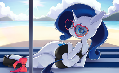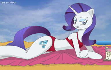 Why, hello Raarity!! ^_^Β Quite beautiful, love her curves and that bikini <3Β Β Β Great art!