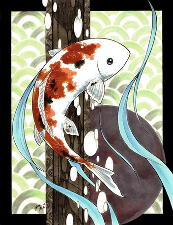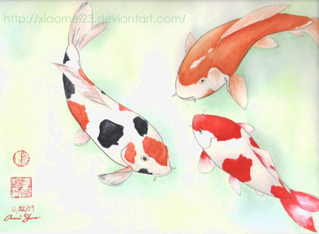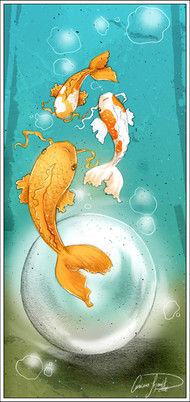 It's not that I don't enjoy people putting 'Koi fish_version2' in their favorites, but I have many other pictures screaming for comments!No, seriously... I have a fish-fetish too, so I treated myself with another fish drawing. It took me a month or so to finish it because I never was pleased with the look of the flowers, I got lazy and I didn't know what to do in the background. It was a pain and I lacked of practice, but now that I'm done I really like the result.