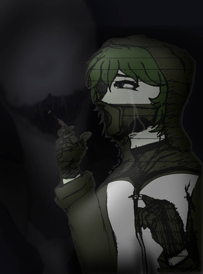 's character Haze. Long after I'd submitted I realized it would have been neat to only have the one 8 legged cockroach while the rest were 'normal' but ah well.Broken gothic window!