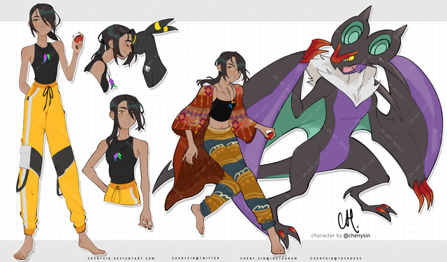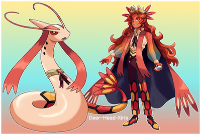 What a wonderful idea to combine the two prettiest long dragons in the Pokemon world as one *w* Ish's outfit style looks very fitting to the Aitema region as well!