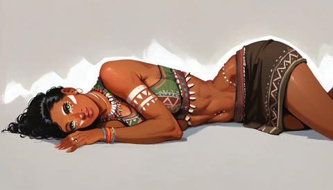 OMG I just love the design of her design and her clothes all together, not only that but she very beautiful. she reminds of one of five my best friends who i grew up with.