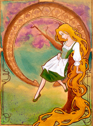 The girl of the tower.I began this almost immediately after seeing the amazingness which is Tangled back in November. It started as a gouache painting but I didn't get very far because of projects. When I finally returned to it, I noticed so many things I felt were wrong, so i re-drew it, scanned it, began it, put it off for a month or two due to portfolio, and here it is! The pose for Rapunzel was inspired by two Mucha works combined.
