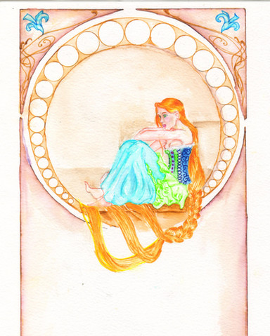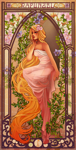 Can't tell you how wonderful this is. I really enjoy how simple, yet exotically Renaissance this is. The light from yellow to light orange is a nice touch to show a spotlight on Rapunzel's face.