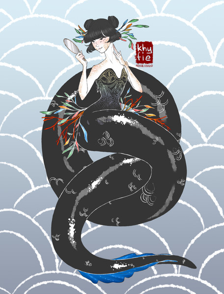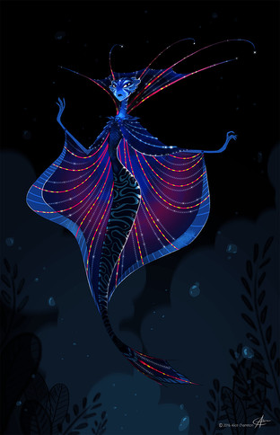 Love the dynamics of the hair and how similar it is in flow to the fins--gorgeous.Β