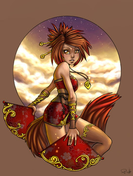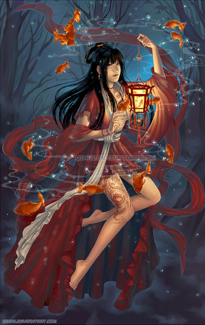 Aw, very nice. I love what you've done with her hair and that skirt. So awsome~ The blue thing coming in her lantern is a very cozy effect, too~