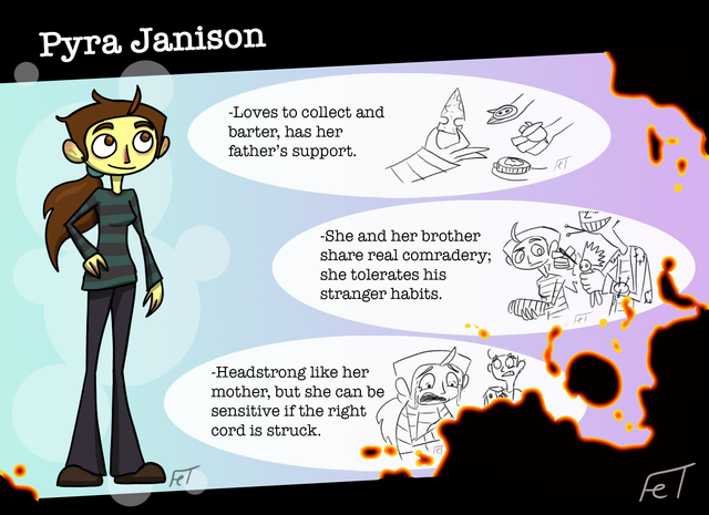 Perri is one of the characters I liked the most before designing her, and with her design I like her even more! She was not that hard to design, but painting her blouse was a nightmare because the circles are hard to edit on my illustrator, so it was kinda hard to do her blouse. On the other hand, doing Tart was a joy, I think she is the first animal I've made myself, so I'm very proud of that, and she came out very well so I feel very happy.