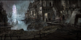 Reminds me of sunless sea. There is a port in a town called varchas Β wich is always lit by burning lamps and mirrors as the people there believe that one falls from the god they chose if they are touched by darkness. Wich isΒ remarkable as they live in a sea far beneath the Mediterranean Sea wich is mostly left in the dark.Β