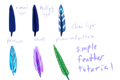 I don't have photoshop, but I've been trying to use the dark iridescent tutorial for a feather using the programs I do have. FireAlpaca is the program I usually use, but my attempts there didn't turn out very well because it doesn't have subtraction. I was more successful using Krita, which I had never heard of but saw recommended here, except that program does not have clipping as an option. I read about why, but I don't understand enough about alpha layers to use that as an alternative, which may have worked.