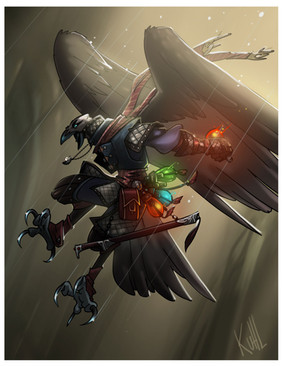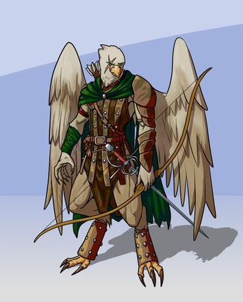 #armor #arrow #avian #bow #clothes #digital #fantasy #feathers #male #pouches #ranger #solo #tail #weapon #whip #wings #art