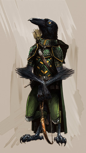 An avian ranger taking a moment to himself and ready himself for the adventure ahead.Related content