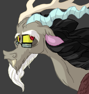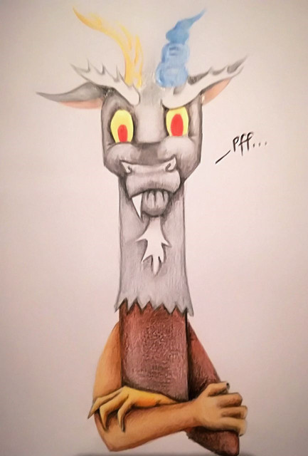 I would have liked to try to make an animation of this drawing, starting with the red pupils and making Discord's eyes completely black, with a smoke effect similar to that used for Sombra's eyes.