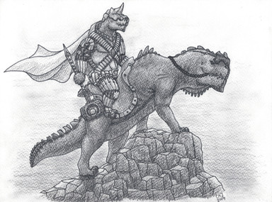 Not sure which would be scarier to see; the lizard warrior riding in the saddly, or the absolutely giant reptile that he's riding! I'm leaning towards the latter....