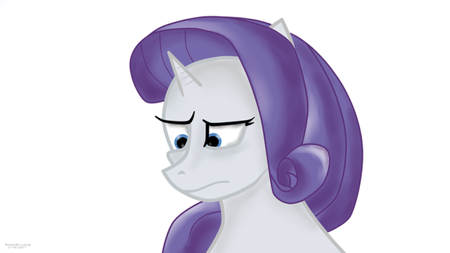 What I like about this work is how you were able to use so many different shades of white so the background and Rarity don't blend in. You can tell Rarity is not the same color as the background. The pose also does great in showing how Rarity felt like her creativity had been robbed by mass-producing "The Princess Dress".