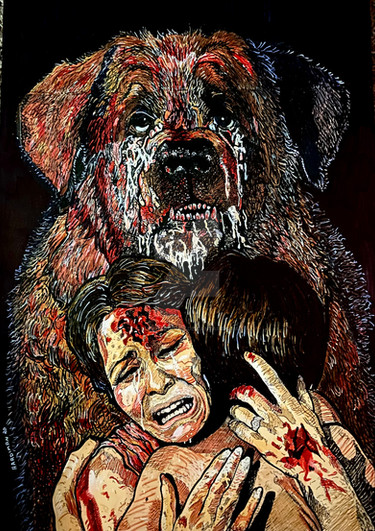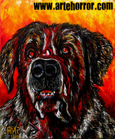 Great job! Beautiful colors and really well drawn expression. He looks dangerous, but his eyes are so sad! Gah! St. Bernards are so cute even when they're covered in blood... I'd probably change my tune if I actually WATCHED the movie though. I'm too scared, it traumatized my brother. One again, BEAUTIFUL work!
