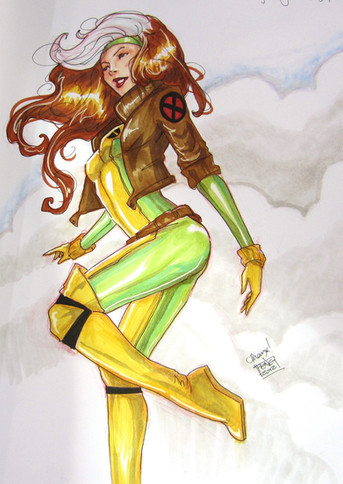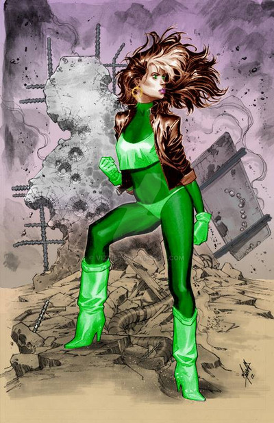 This Rogue illustration is simply amazing: The line art, the colors, the shadings, the volume... I've added it to my favourites.