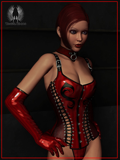 Amazingly hot. Her black catsuit and corset are so sexy. I also like her face and the look in her eyes.