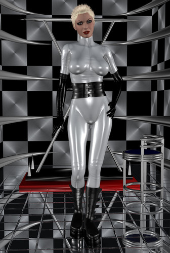 This is so amazingly AWESOME. I love her boots and corset. That snear is priceless...I would call her "Mistress".