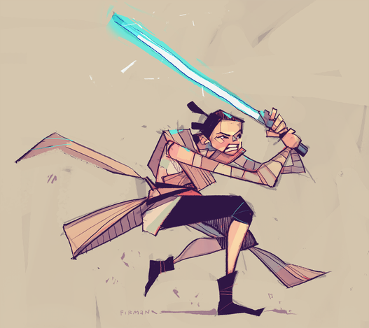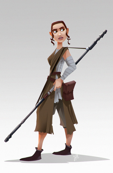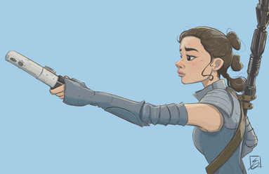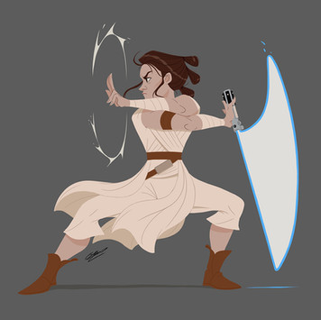 Here's a Rey! It was a fun challenge to do some dynamic posing. Faces in weird angles are still a pain ><Related content