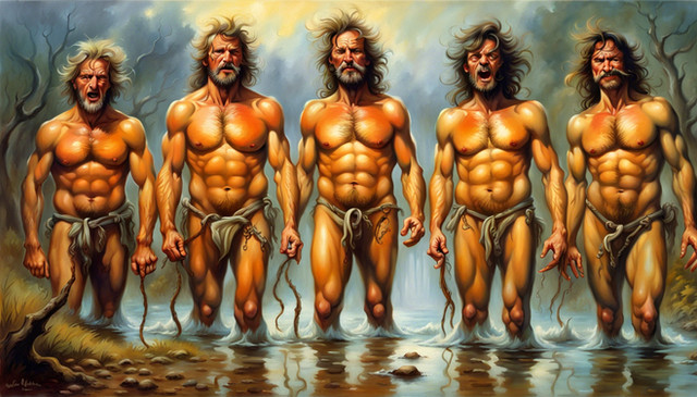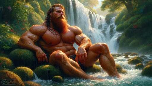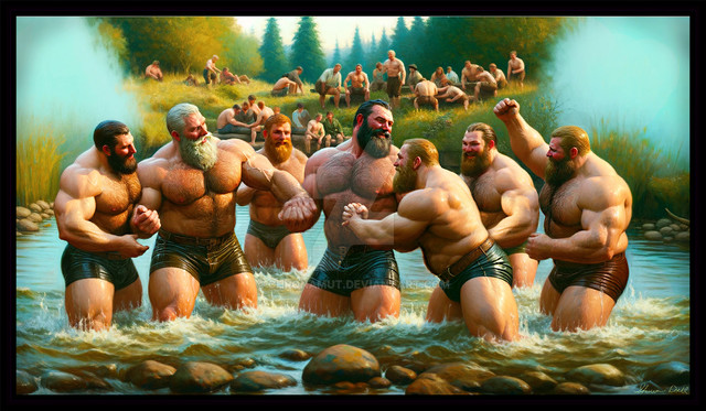 New nature pieces up set in a photorealistic or victorian painting style of new and interesting creations!Β Find more at shawndall.com and you can peruse more at www.chronriddles.com/thechronaβ¦Five men bathe in a serene environment, their sun dappled wet bodies glistening as they scrub their clothes - the entire scene is both tasteful and masculine. It is as if they don't even realize you re there observing them, but you can sense a comradery amongst all of them.