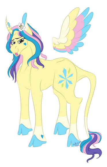 Heya! PrincessRaevinFlash and I did a couple of collabs recently, in which we each sketched a canon MLP character and sent it to the other for lining/coloring! The design here was roughed by her. I love her style so so much, I don't think I did it justice! (Maybe it would have been if DA didn't keep dragging my picture quality through the dirt :/)The other half may interest you Flim Flam brothers fans out there; Raevin turned my sketch into an adorable finished piece here: www.deviantart.com/princessrae…