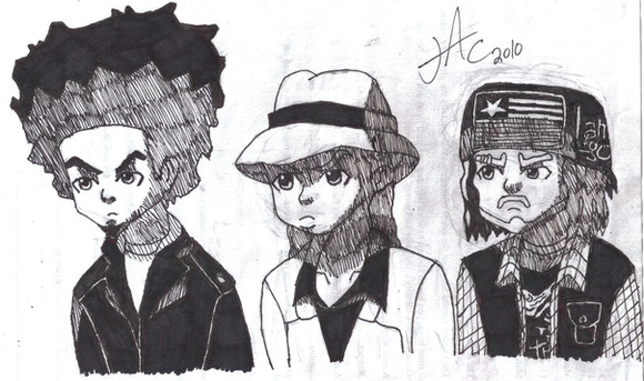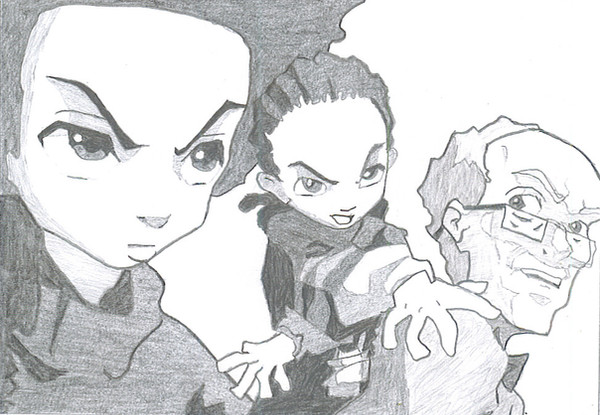 The Boondocks really does rock. That show is terribly funny, and harshly insightful, and I can't wait for season 3.This pic uses the cover of the Season 2 DVD for reference, featuring (from right to left) Riley, Huey, and Robert Freeman.