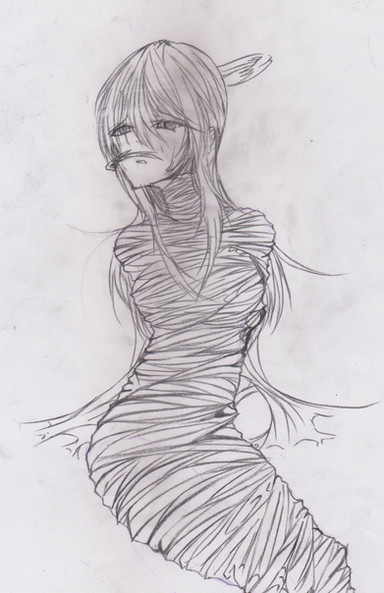 First of all... WHAT THE HELL DA?! This new submission stuff is crazy! What do I do if I wanna make something with a preview image?! Never have I missed the old DA layout so much. *tear*Well, now that that's outta the way... ON WITH PICTURES! Okay, picture. Sorry I've only got one for now. I'm getting swamped with school and my job right now so I haven't had much chance to draw anything. I think the head turned out pretty well. I hope I got the shading right. A friend of mine said she might look better if I had her hanging upside-down but I think I'll leave her standing for now.