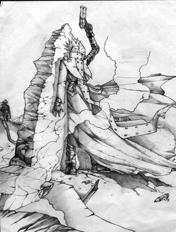 I drew this while working third shift at Dairy Mart. Started with a Brush micron, finished with .005 micron. straight ink, no pre pencils. So it took me a few days, I was so scared of messing up. and no I don't use references in my work, so shadows might be off here and there..Related content