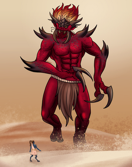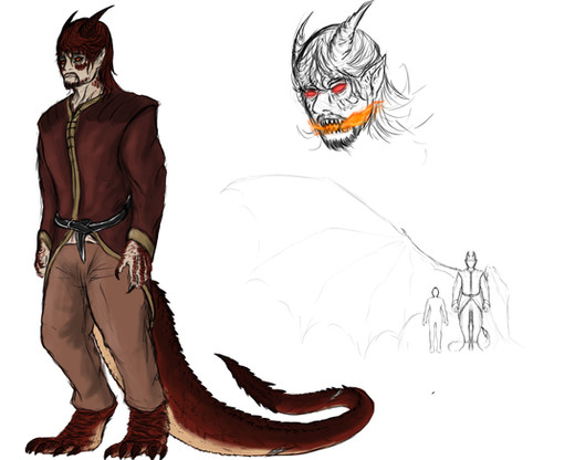 Rorik is very fatherly and attempts to give guidance to his descendant Wila, attempting to teach her a variety of more combat oriented skills . Oddly he can breathe fire as well which sets him apart from other squamataurs and has tried to teach Wila this skill on many occasions, though she both seems incapable of it and shows very little interest. The same goes for most his other fighting advice since Wila seems to like the cushy life she's made for herself and has no desire to go back to her more wild combative ways she once used in the green hell.