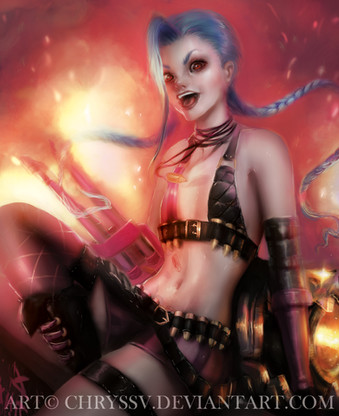 Well you certainly did a great job on capturing Jinx's wild nature in both the LOL video she premiered in, and in the game. And that rather crazed expression is exactly how I envision facing off with her would be like......probably the last thing I would see if I were to go toe to toe with her. Well done!