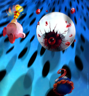 In Dreamland 3 when you destroy Zero's body, his Eye (Which seems to be the brain for beings like him) jumps ship and tries to take out kirby as he is doing in the pic.
