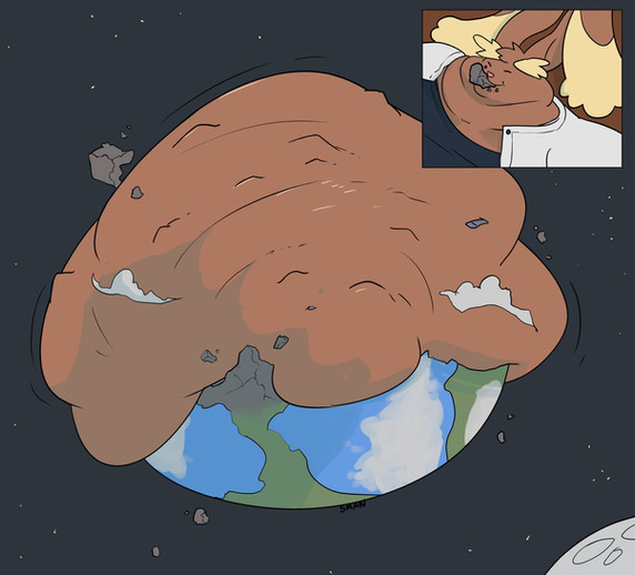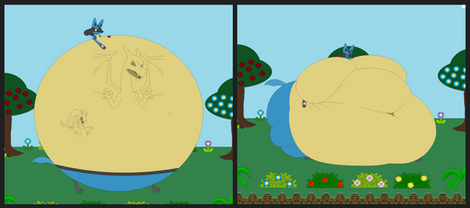 Layla's experiment continues! It seems she's devoured thousands.... no, billions of other pokemon! Her gut is so full, it's toppling all the skyscrapers of the city around her! At this rate, there seems to be no limit to how much she can cram in her gut!Lineart by www.furaffinity.net/user/hooda…