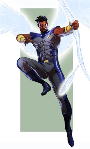 Very nice character design.Β What are his abilities and powers?!Β What about a back-story/origin story?!