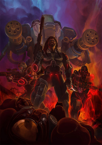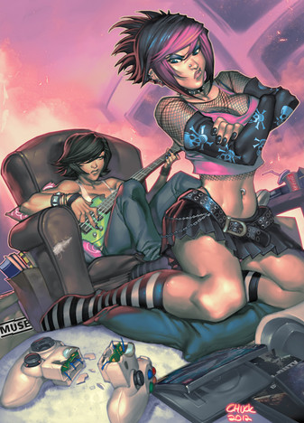 Awesome character designs, colours, and layout. This is a very vibrant piece.