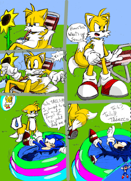 speaking of laughs...sonic cracked me up here lol love his expression along with the " you're too slow " taunt. tis a prefect combo! while im looking up there, i rly like how you drew baby bros heh. get that star boys!
